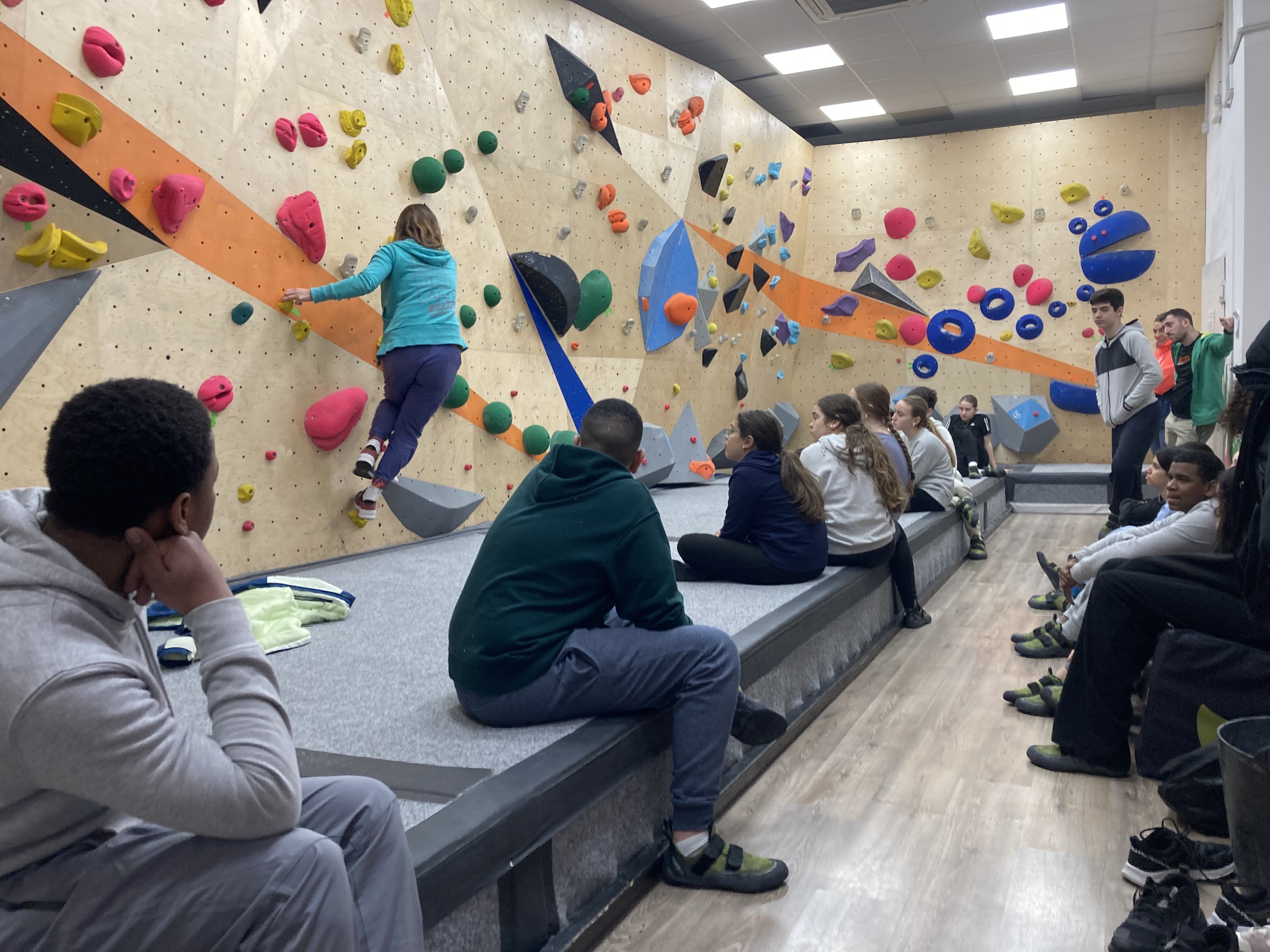 El pasado16 de diciembre un grupo representativo de 3º ESO fue al Boulderland. Nada más llegar, nos probamos los pies de gato y estuvimos recibiendo información sobre: cómo se escala, material necesario, posicionamiento del cuerpo, musculatura implicada en la trepa, técnicas, niveles de las vías de escalada, etc