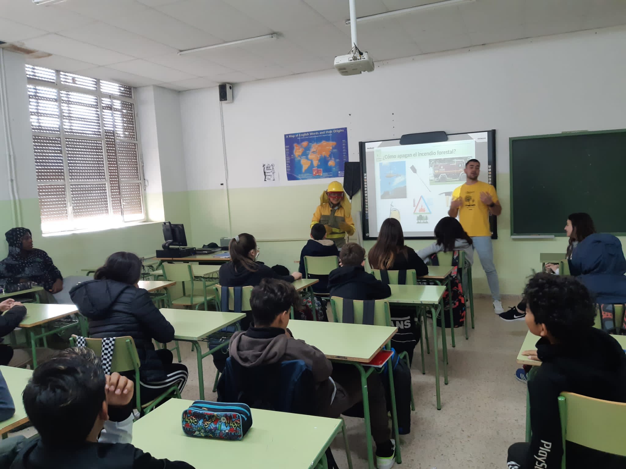 Los alumnos de 1º ESO grupos A y B han recibido una interesante charla acerca de la prevención de incendios forestales el 30 de noviembre. Los de los grupos C, D y F la recibieron el pasado miércoles 23. La actividad ha sido impartida por agentes forestales de la D.G.A. Los alumnos han probado el material que se utiliza para la extinción de incendios y han comprendido la importancia de mantener la biodiversidad de los bosques y espacios naturales de Aragón. También han reforzado lo aprendido jugando al Trivial.