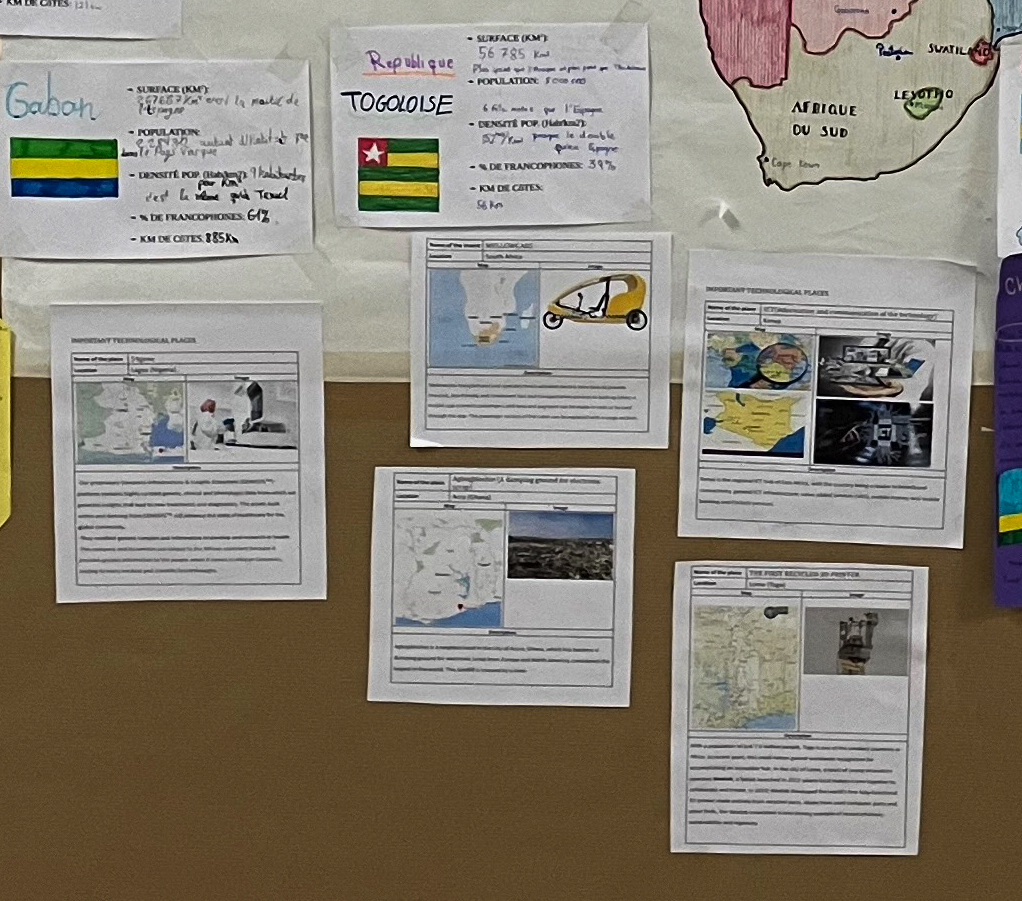 Dentro del proyecto interdisciplinar sobre África, los alumnos de Tecnología de 2º ESO del BRIT, han trabajado sobre sitios de interés tecnológico en África en inglés. Cada alumno ha buscado un lugar de interés y ha hecho una ficha al respecto. Hemos elegido cinco de los mejores y los hemos puesto en el gran mural junto a la sala de profesores. La actividad ha sido muy enriquecedora y han salido algunas cosas muy interesantes. Por ejemplo, que en África se encuentra el vertedero más grande de desechos electrónicos del mundo. Los países más desarrollados pagan a los países pobres africanos para que almacenen los desechos electrónicos y así, librarse de ellos.