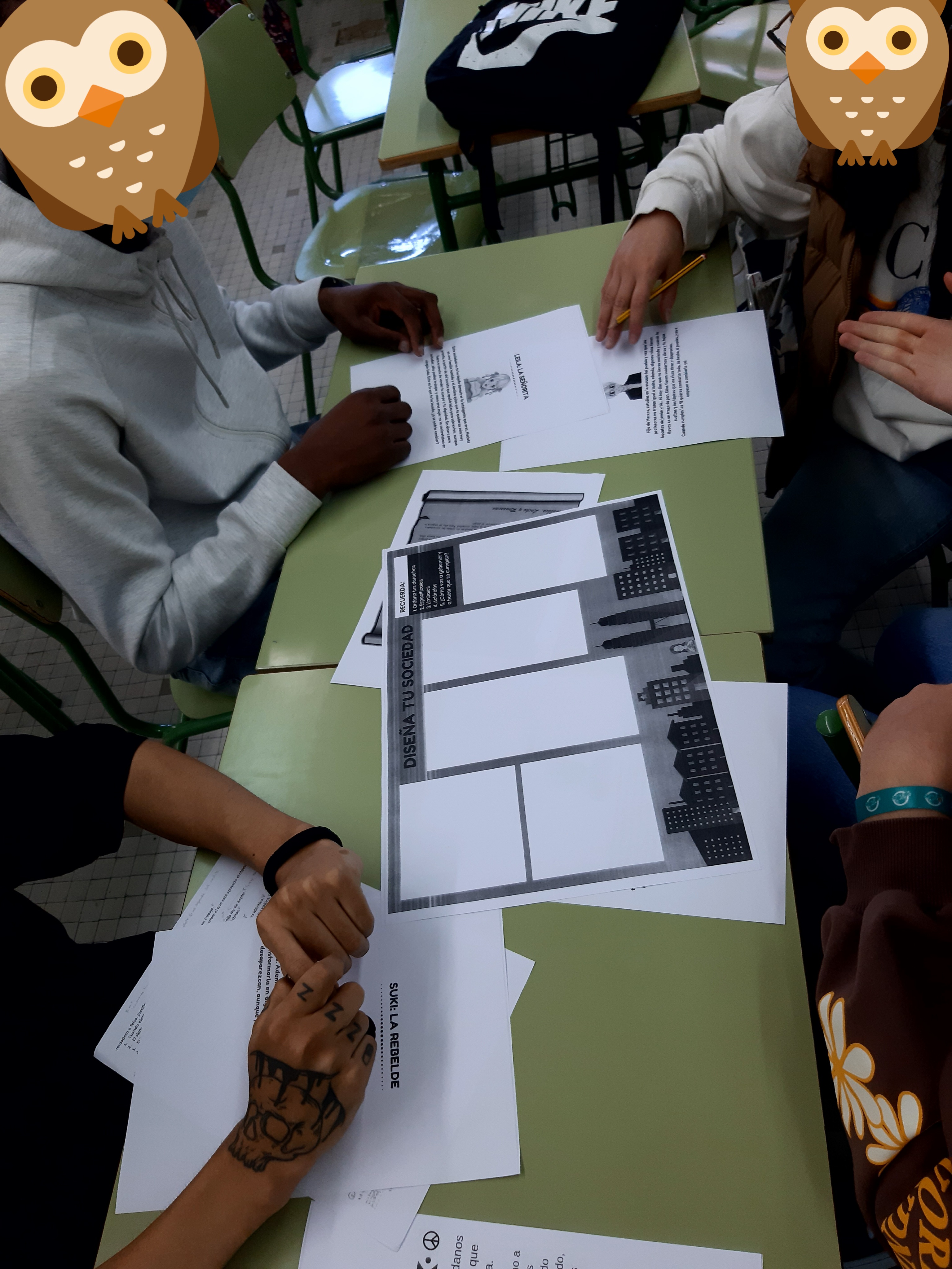 En el tema de Filosofía política de 1º de Bachillerato,hemos empleado el juego de la profesora Lourdes Cardenal para diseñar nuestra propia sociedad. Para ello, en base a diferentes roles que cada persona adopta por grupos, cada grupo ha de regular el derecho a la vida, a la libertad, a la seguridad y a la igualdad entre hombres y mujeres.