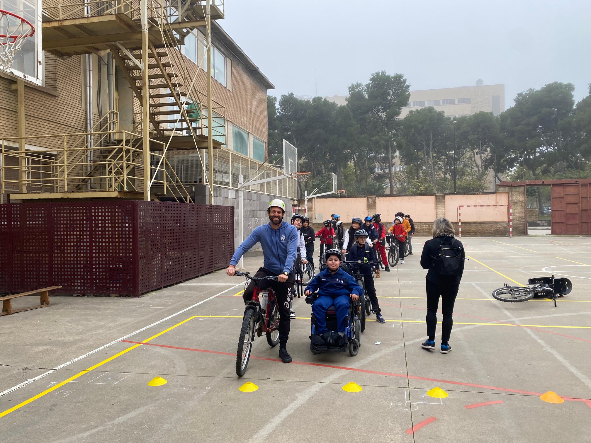 Allí nos juntamos con los grupos embajadores del Ramón Pignatelli, CPI Río Sena, CPI Espartidero, Félix de Azara y Ramón y Cajal. Practicamos maniobras, juegos y postas de me?anica de bici. Salió todo rodado la verdad, la única pega: que el sol tardó demasiado en salir.