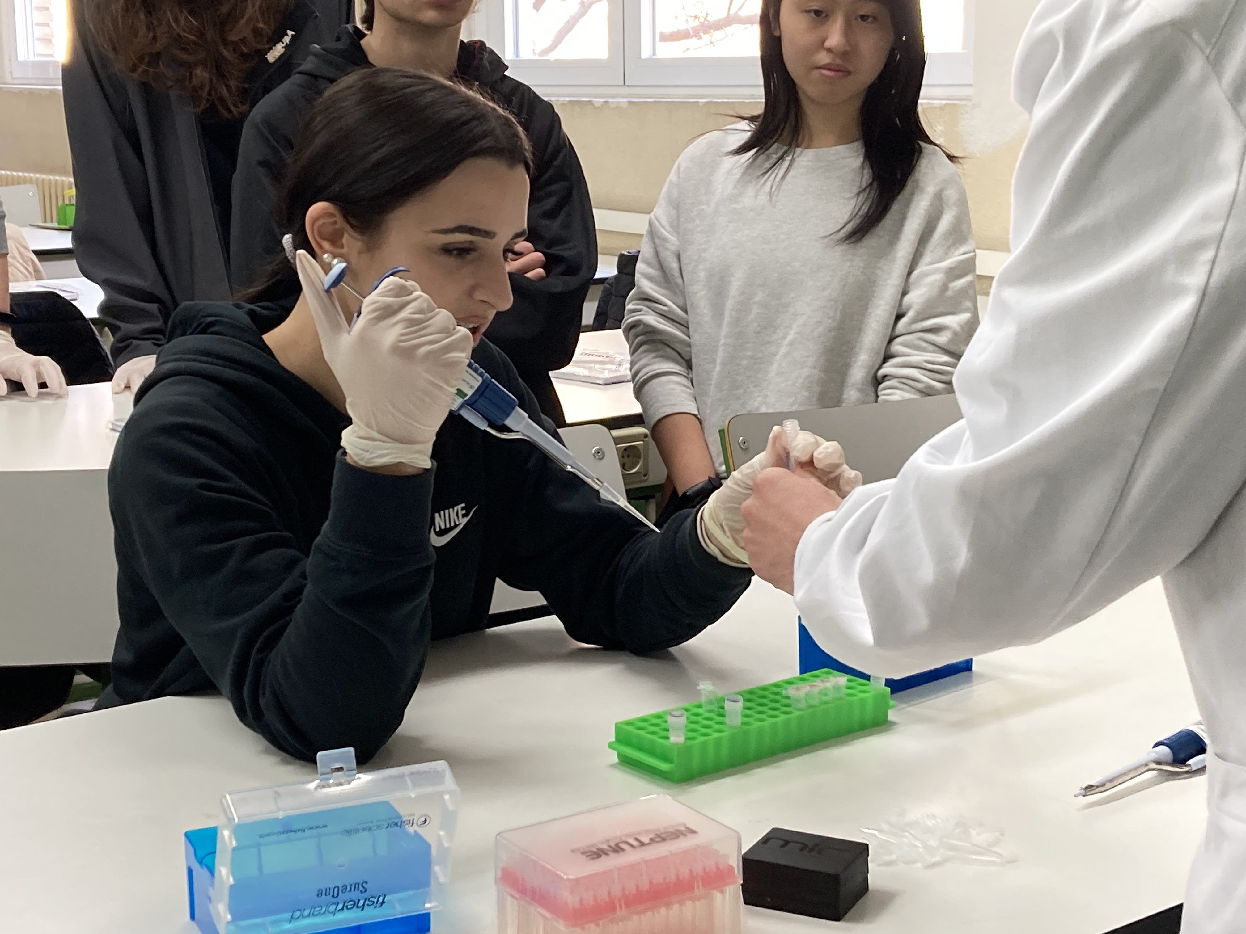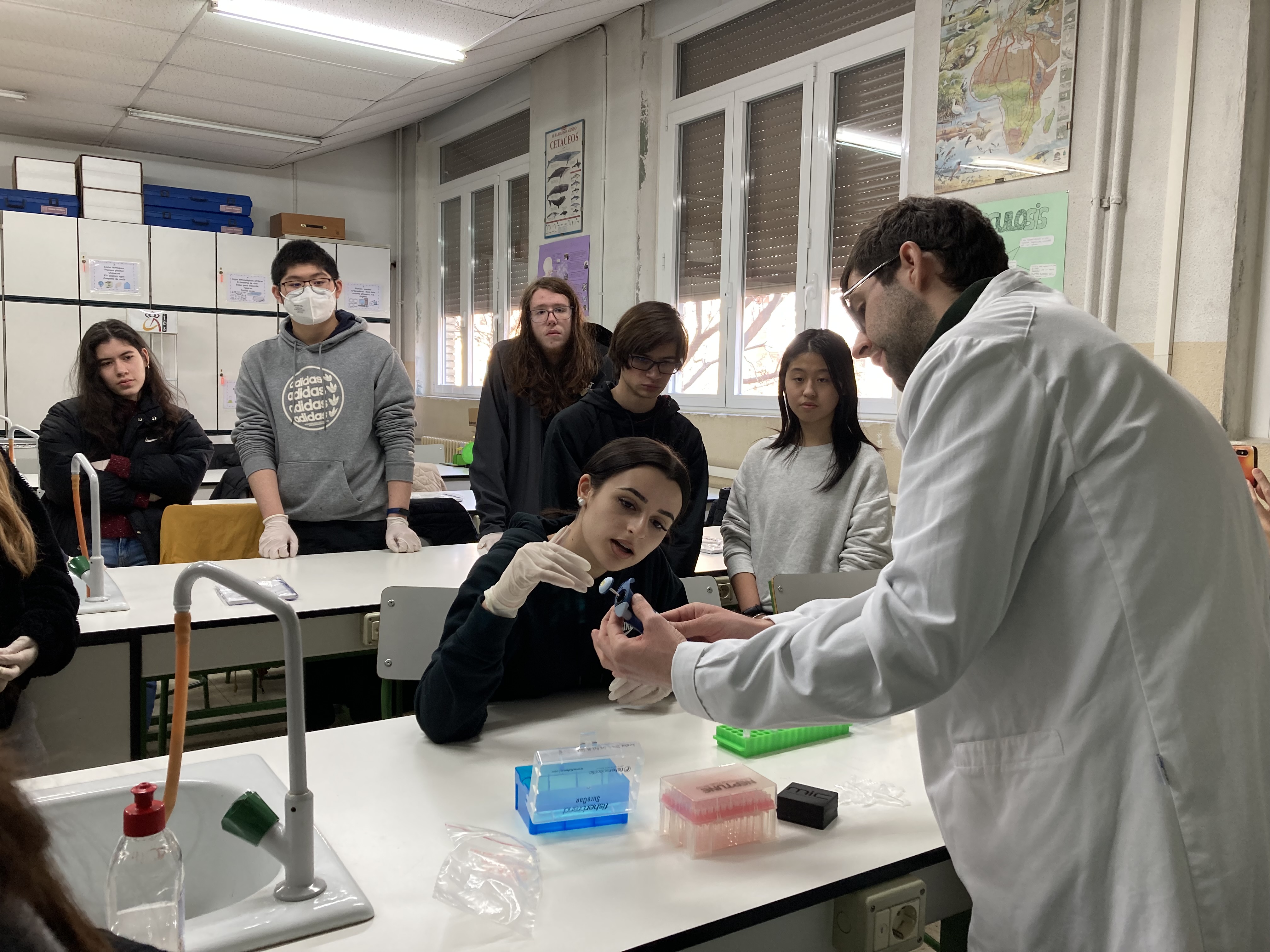 Los alumnos han preparado las muestras, mezclando el material genético con los reactivos del kit necesarios para la amplificación del ADN.