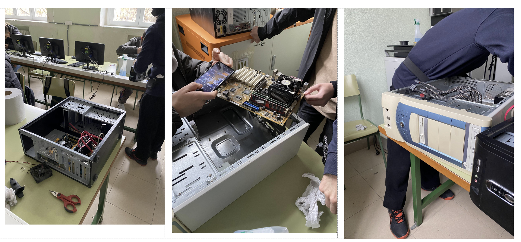En el taller, los alumnos que han participado han aprendido a desmontar los ordenadores, conocer los componentes que los constituyen, Detectar cuales fallan y cambiarlos. También han recuperado carcasas de ordenadores antiguos y las han customizado. Para ello han realizado un trabajo de limpieza y desmontaje minucioso.