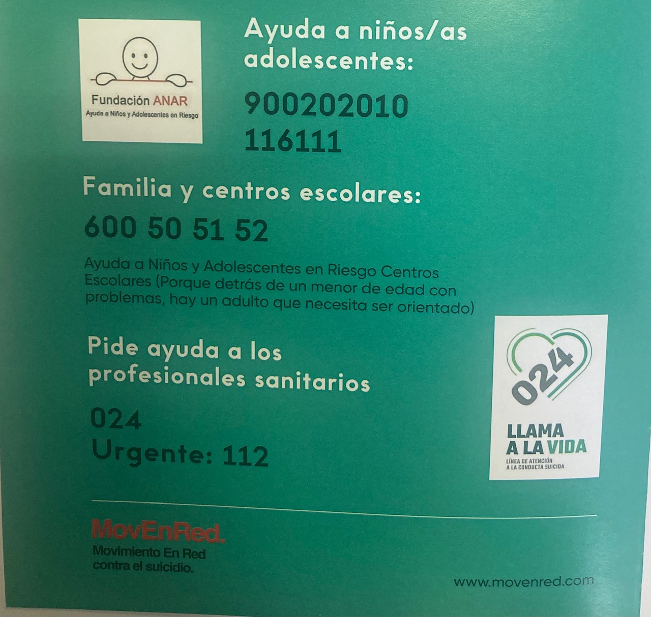 Teléfonos de ayuda: 024, 112