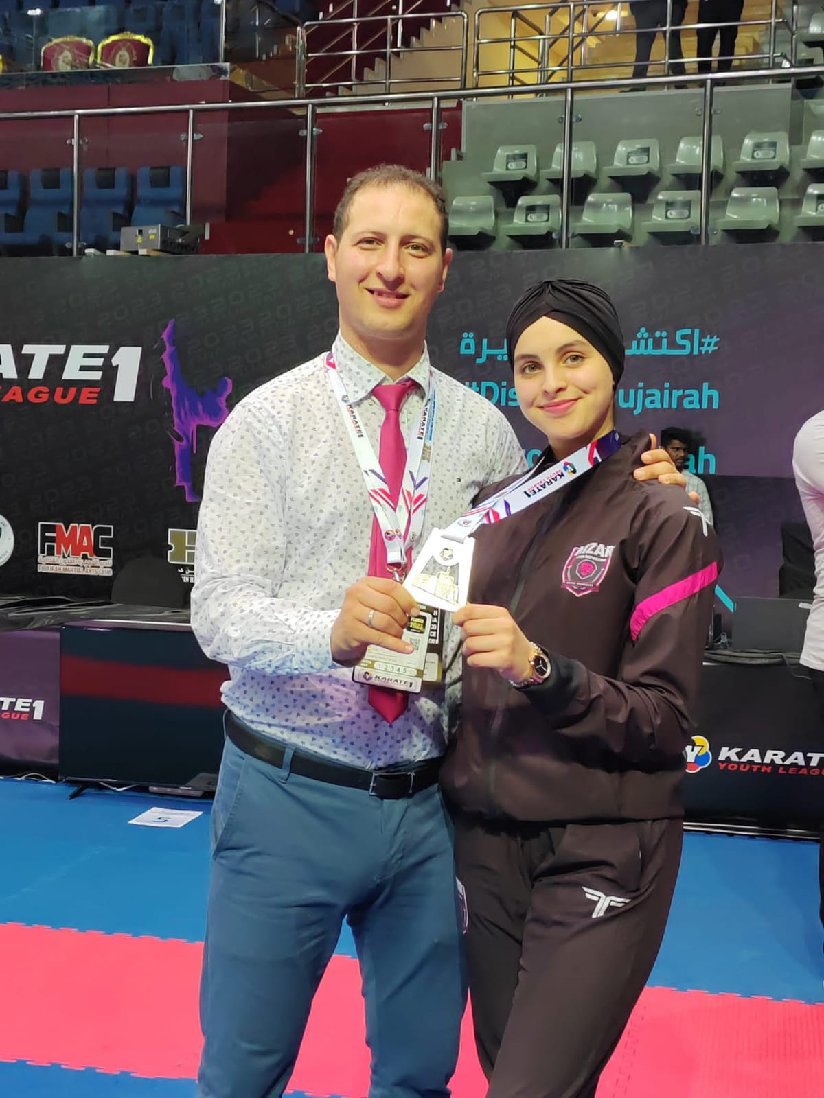 Nuestra alumna Malak es una deportista de primer nivel del Club Deportivo Nizar. Es medallista nacional y hace una semana es la única aragonesa medallista mundial en el circuito mundial YOUTH LEAGUE KARATE 1 FUJAIRAH. Se ha proclamado subcampeona mundial en dicho circuito en Emiratos Árabes.