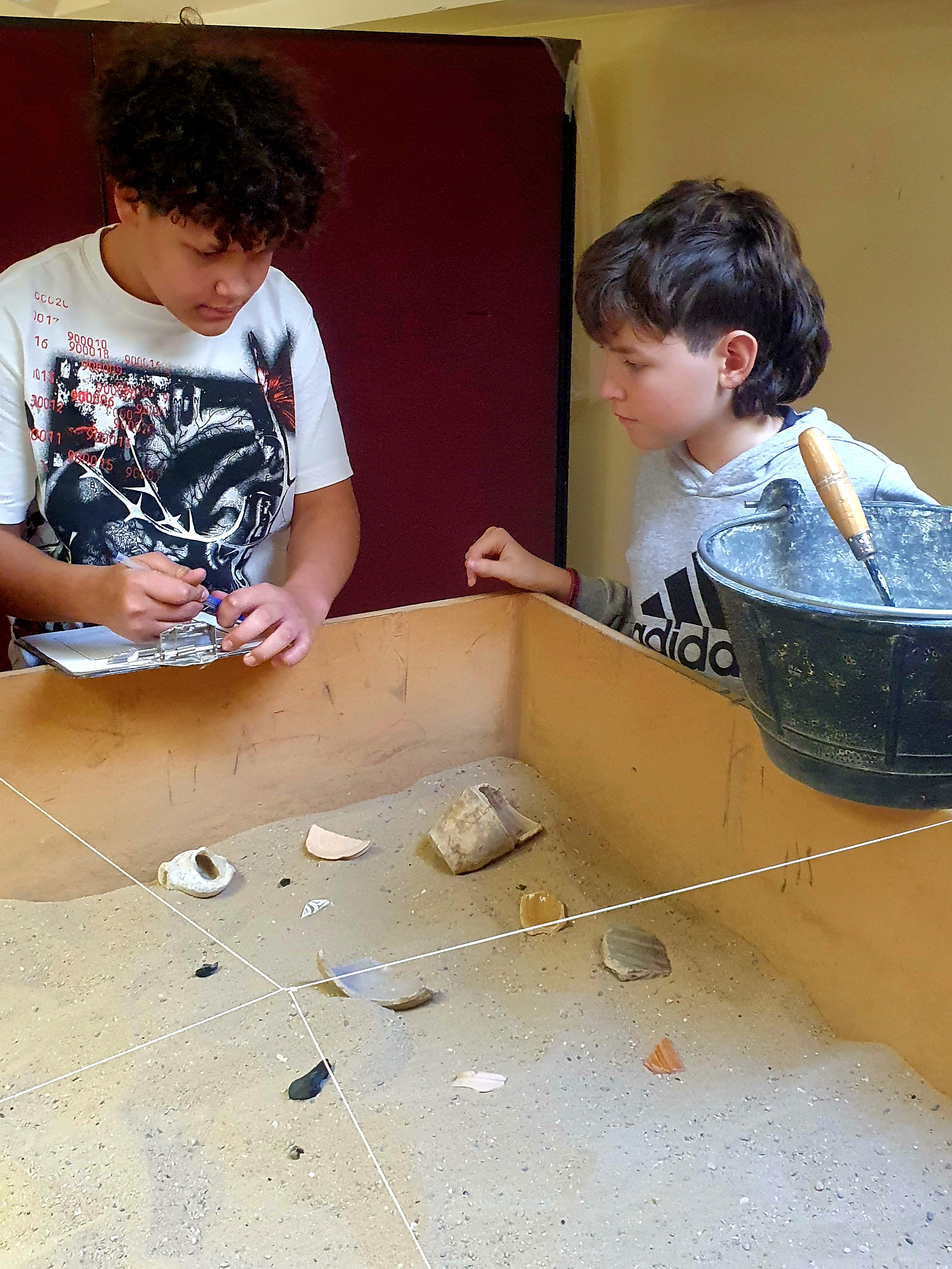 Terminaron realizando una pequeña excavación con instruemental de arquéologo de última tecnología (paletas, pinceles, cedazos, cubos), dibujaron lo planos de lo encontrado y por último llegaron a conclusiones que expusierón explicando encontrado y su época histórica.