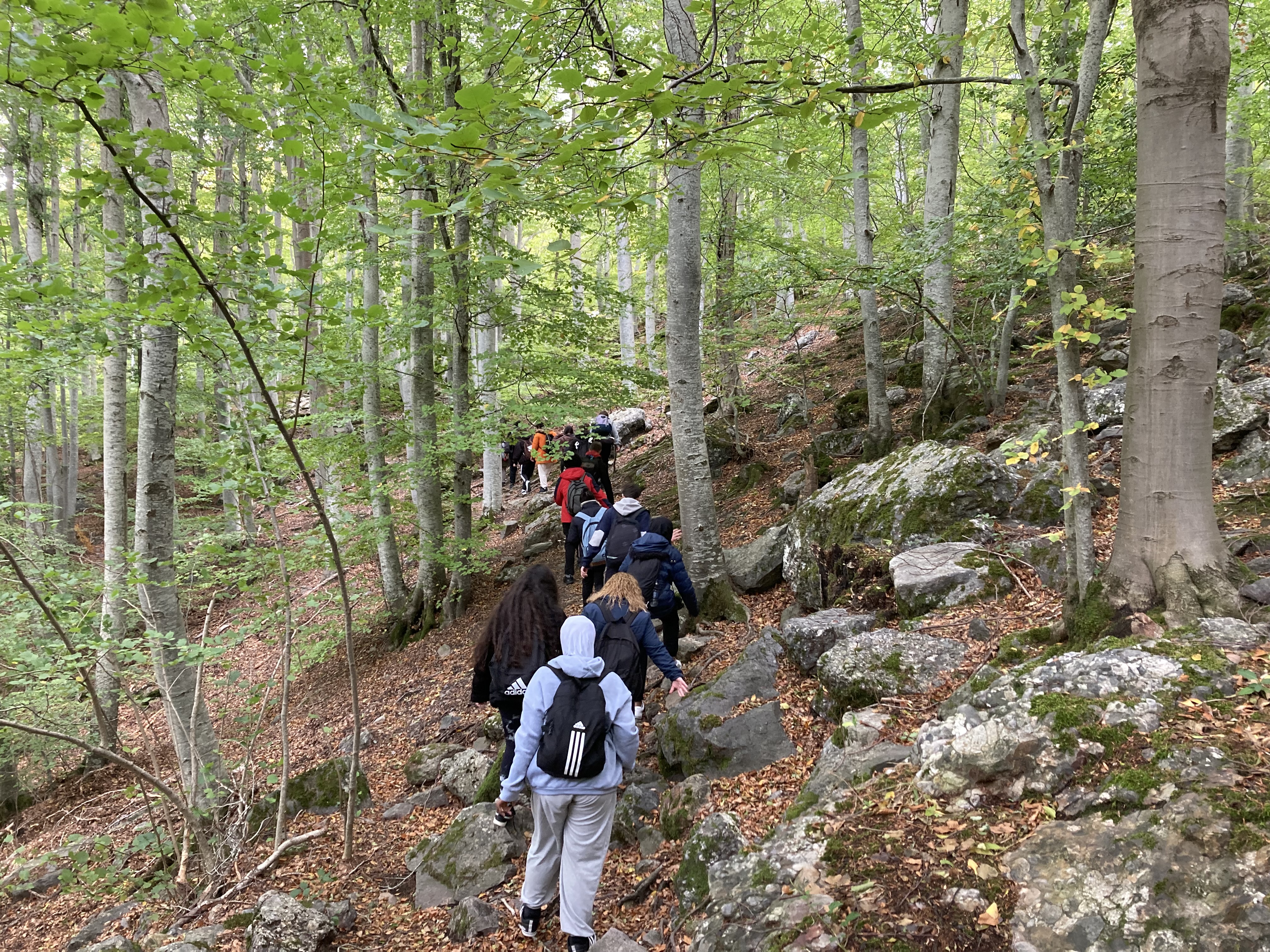 "El pasado miércoles 9 de Octubre, 43 chicos y chicas de 3º y 4º ESO disfrutaron de la visita al magnífico hayedo de Peña Roya del Moncayo, montaña icónica del Sistema Ibérico. Con la información que nos transmitieron dos de las guías del Centro de Interpretación de Agramonte, aprendimos sobre este único ecosistema, sus bosques tan variados (entre los que destaca su frondoso hayedo) por su peculiar climatología, su fauna y dimos un pequeño paseo por sus bosques. Después de comer visitamos una de las surgencias más grandes de Europa, la surgencia del río Queiles, en la localidad soriana de Vozmediano."