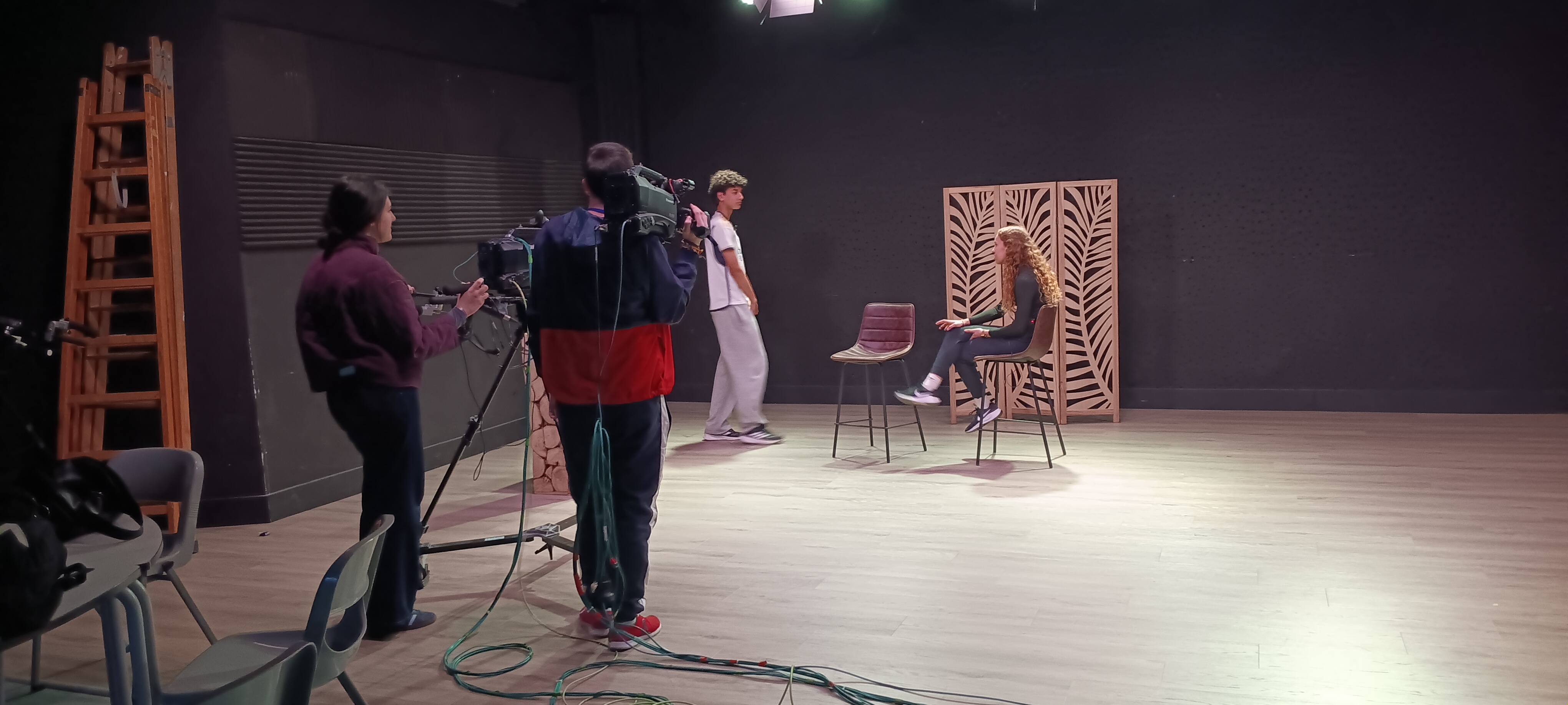 Pero lo mejor estaba por llegar: ¡el plató!. Divididos en dos equipos, nos repartimos los roles de realizador, cámara, técnicos de sonido e imagen, y presentadores, sintiendo la presión y la adrenalina de una grabación real. Aplicamos conceptos de ritmo y movimientos como el travelling o el zoom para que nuestras tomas fueran perfectas.
