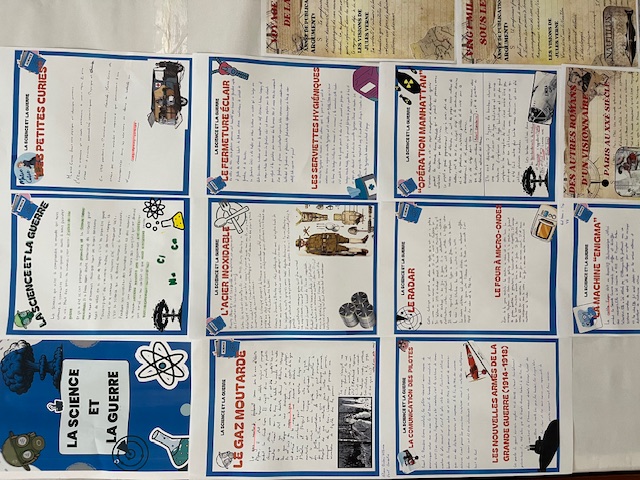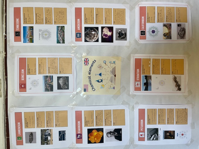 En 4º ESO, en Educación Física, han creado infografías sobre un avance tecnológico en el deporte. Desde la mteria de Geografía e Historia en francés, han trabajado la relación de la ciencia y la guerra, tanto en la Primera como en la Segunda Guerra Mundial. En Inglés, junto con Física y Química, han investigado acerca del origen de los nombres de varios elementos químicos y su uso, tales como el Americio, el Tenesino o el Berkelio.